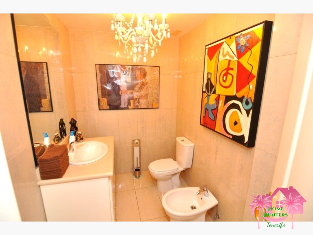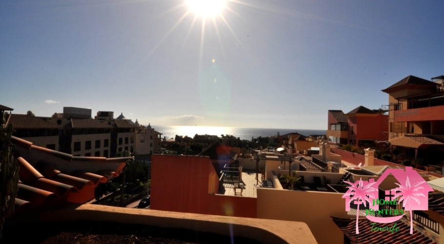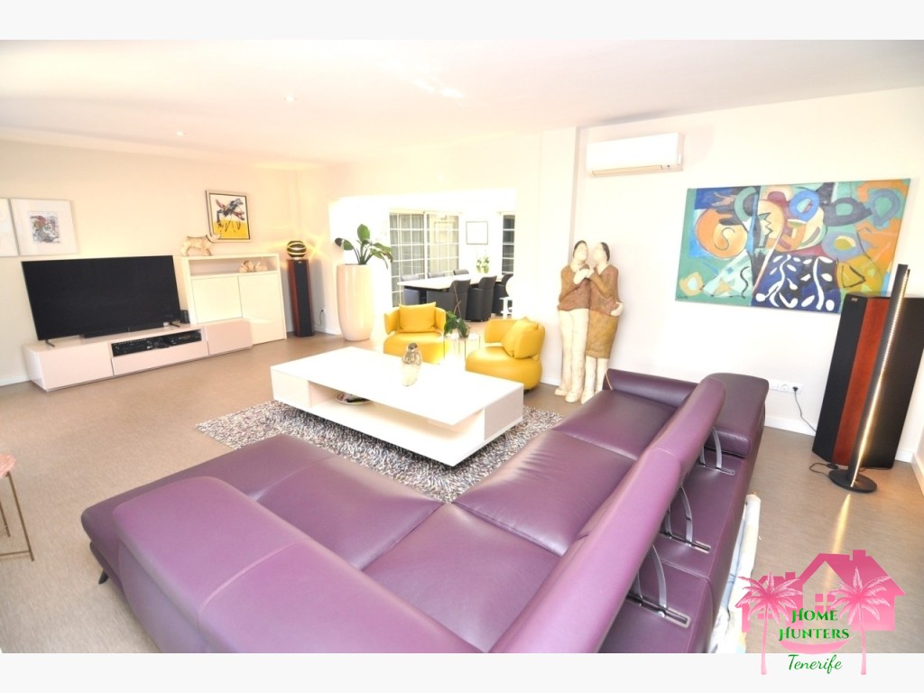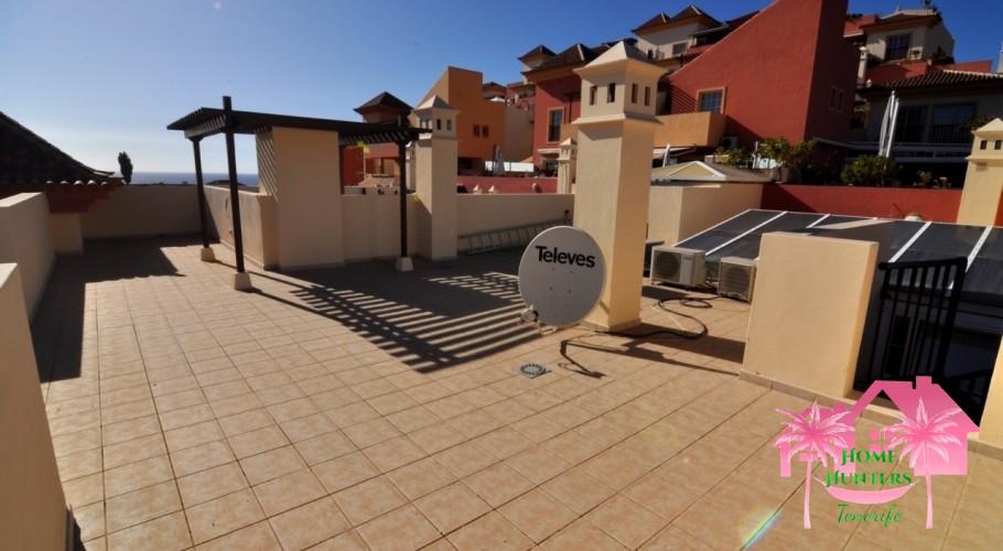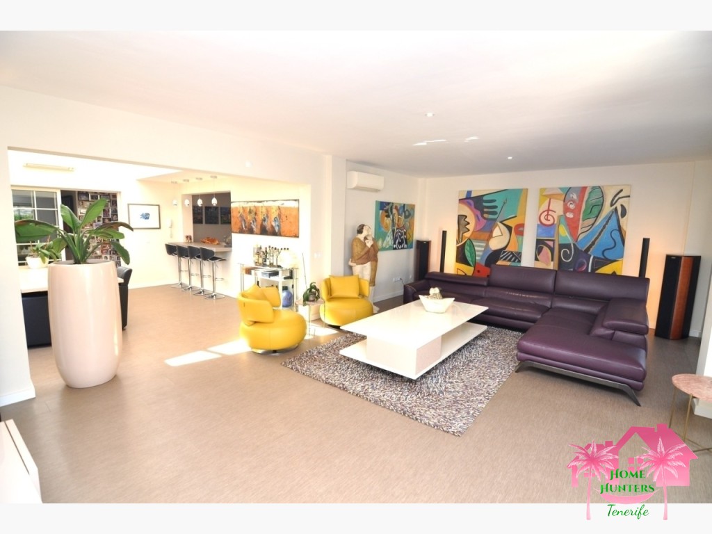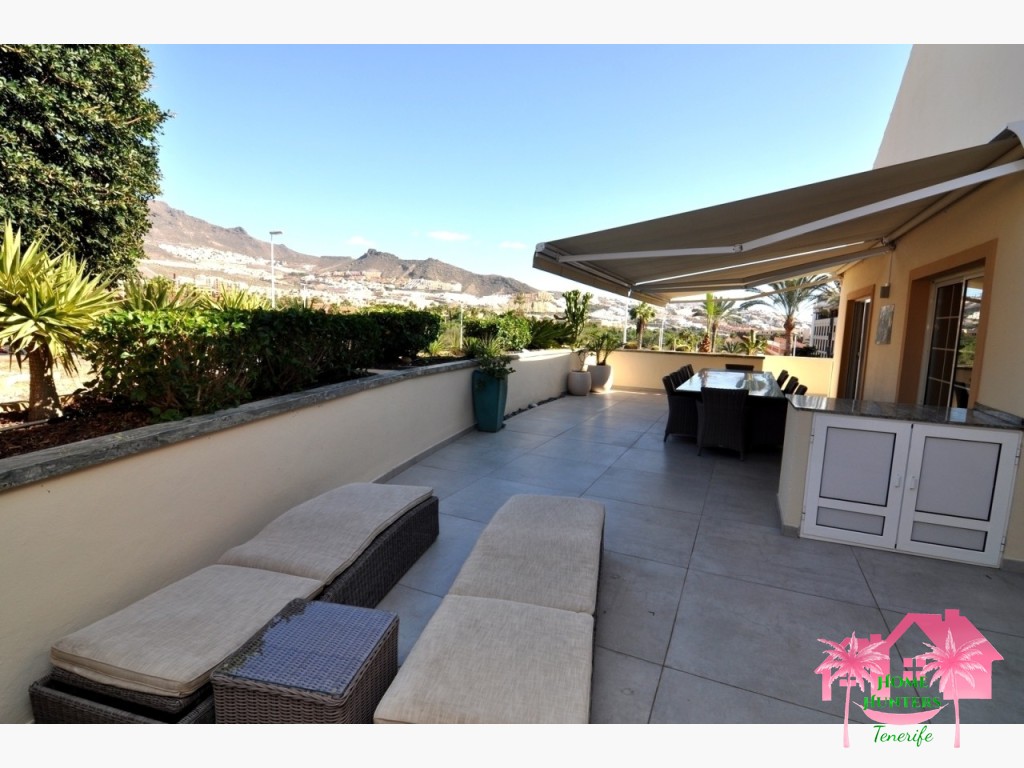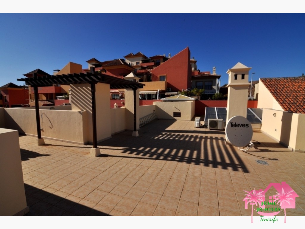 - Stunning and spacios penthouse for sale in the magnificent area of El Duque Costa Adeje in the prestigious "Terrazas del Duque II" complex. Consists of 4 bedrooms, one of which is used as the office, a large living room and dining room, a separate kitchen, 3 bathrooms. From the living room there is an access to a 120 m2 terrace with a big table and space with hammocks and a bar-kitchen equipped with appliances. Besides there is a 20 m2 terrace in the master bedroom suite. You can access through stairs to a 150 m2 ocean view solarium. There is a spacious marble-covered community room, a reception with concierge service, a heated community pool and free WI-FI for residents in the residential complex. 2 parking spaces and 2 storage rooms are included in the price.