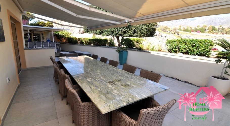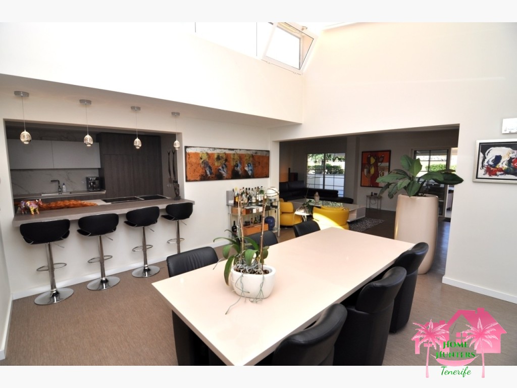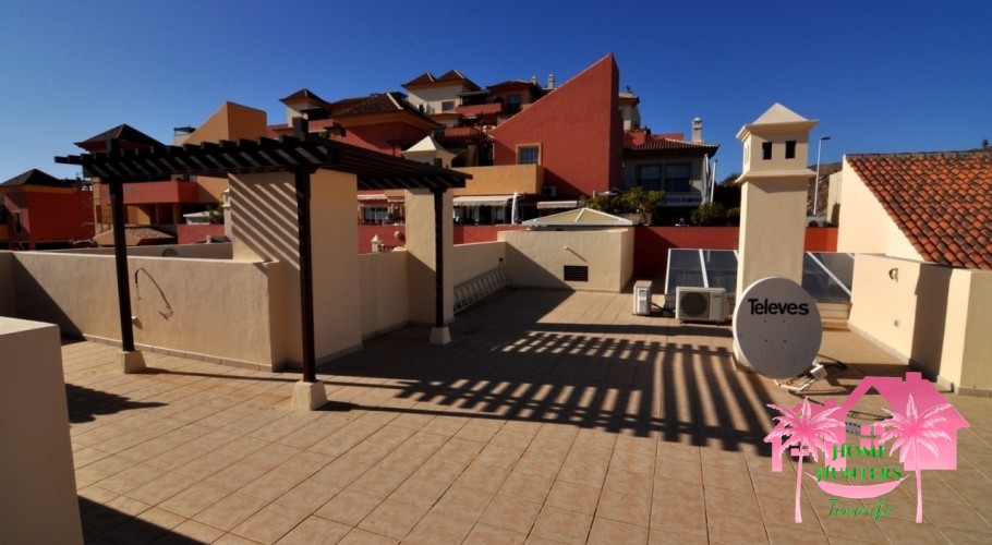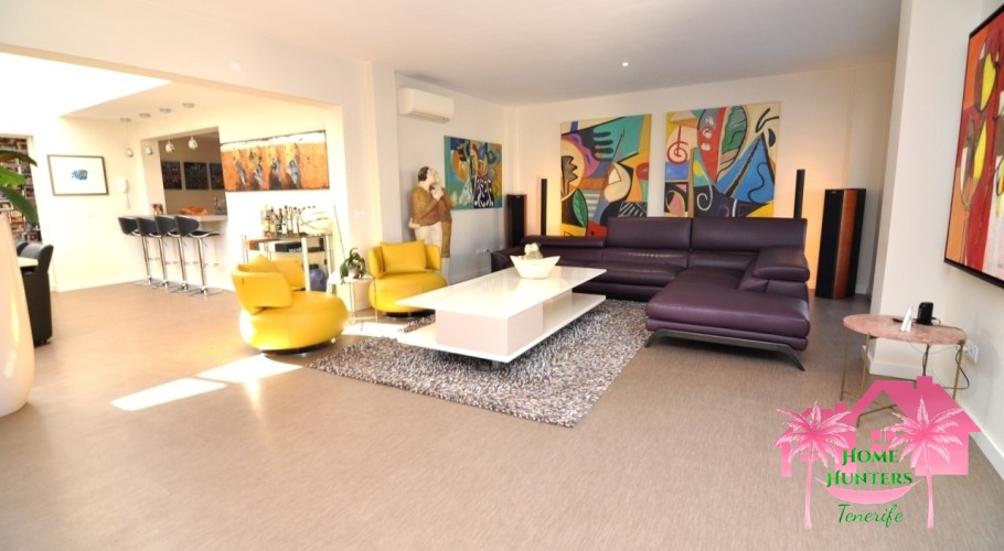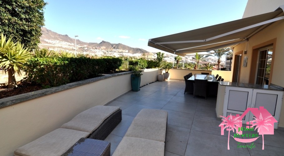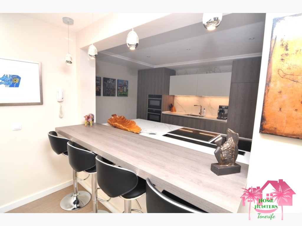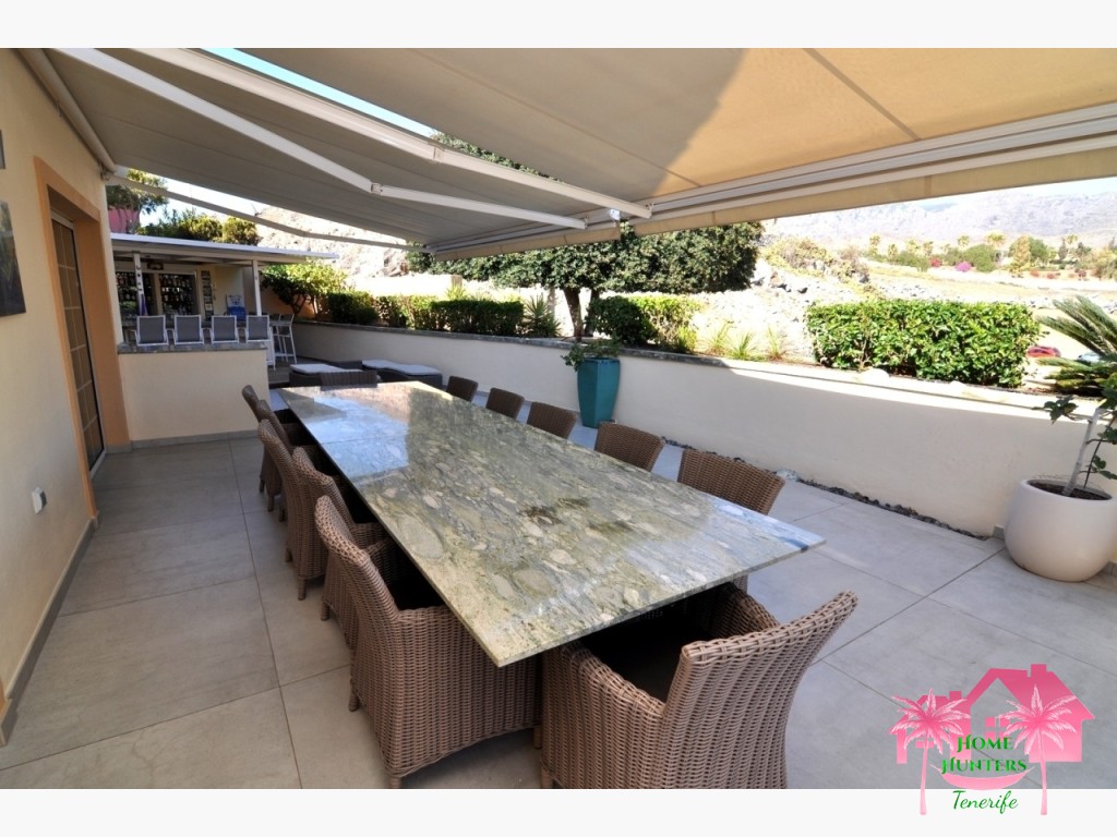 - Stunning and spacios penthouse for sale in the magnificent area of El Duque Costa Adeje in the prestigious "Terrazas del Duque II" complex. Consists of 4 bedrooms, one of which is used as the office, a large living room and dining room, a separate kitchen, 3 bathrooms. From the living room there is an access to a 120 m2 terrace with a big table and space with hammocks and a bar-kitchen equipped with appliances. Besides there is a 20 m2 terrace in the master bedroom suite. You can access through stairs to a 150 m2 ocean view solarium. There is a spacious marble-covered community room, a reception with concierge service, a heated community pool and free WI-FI for residents in the residential complex. 2 parking spaces and 2 storage rooms are included in the price.