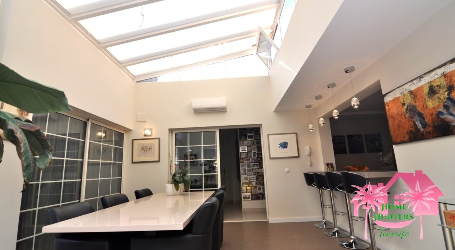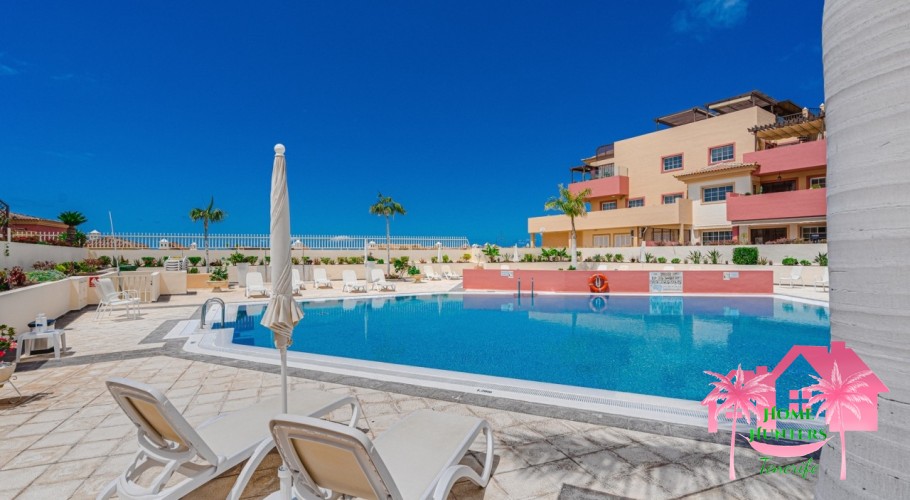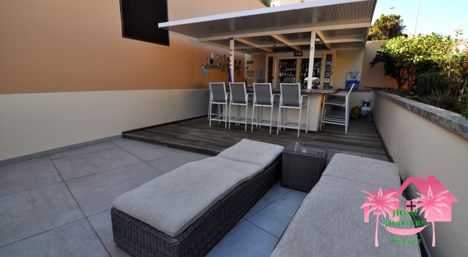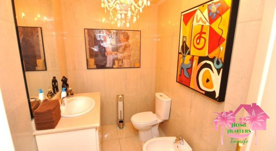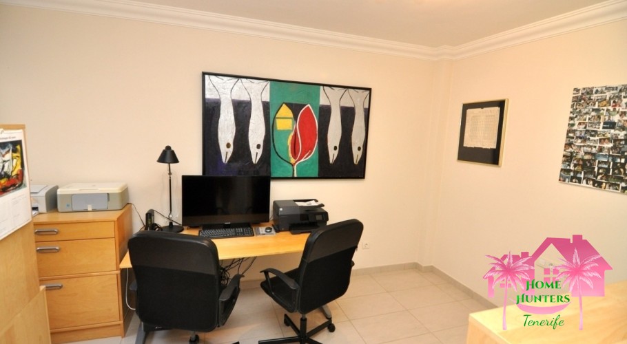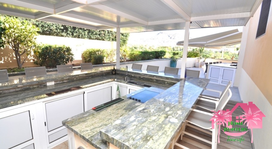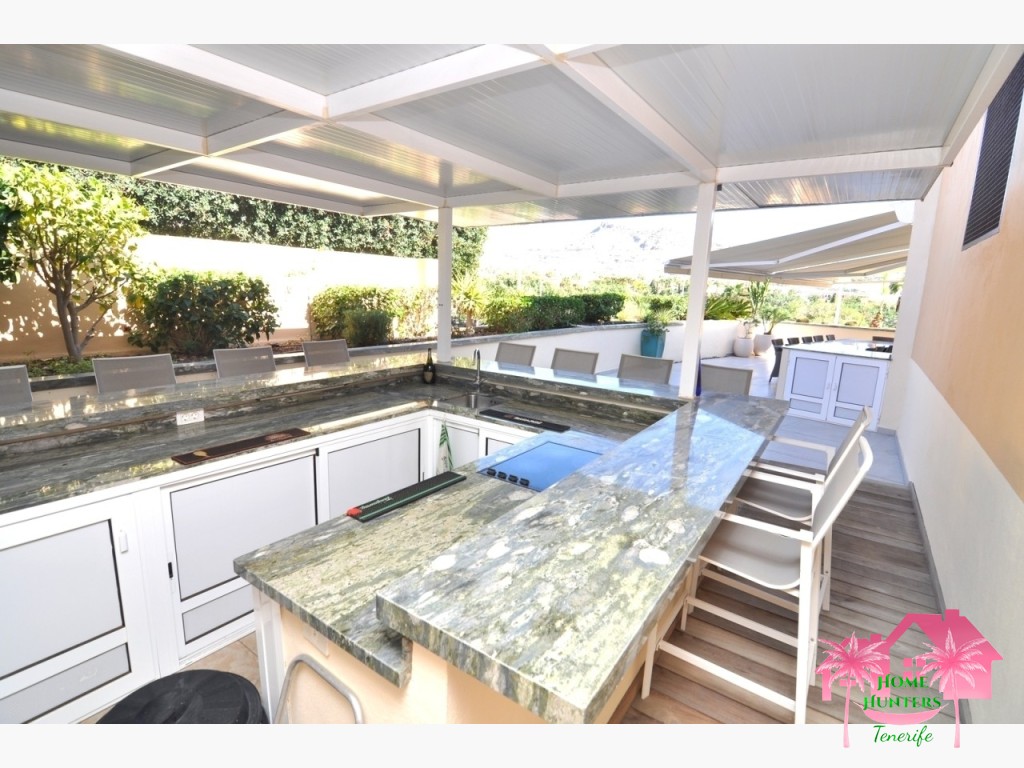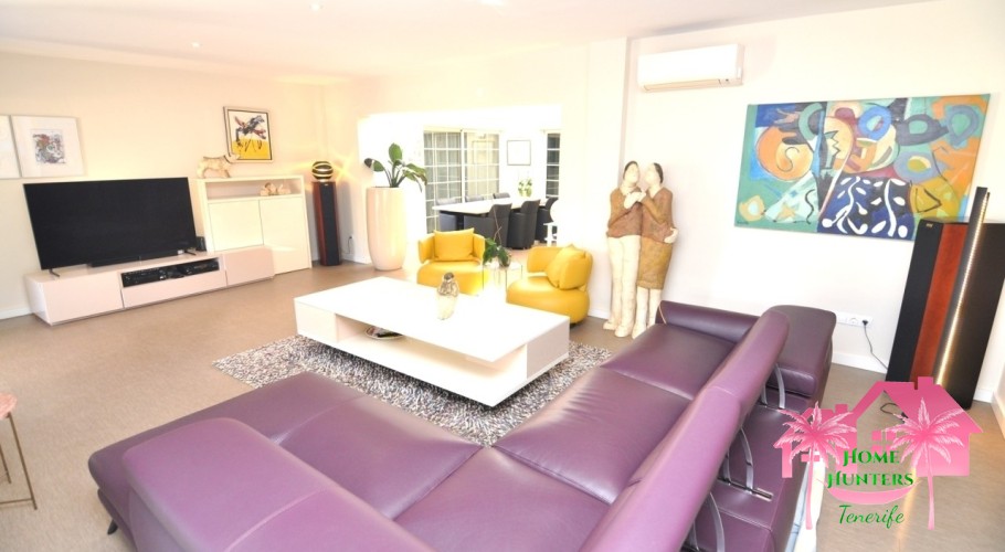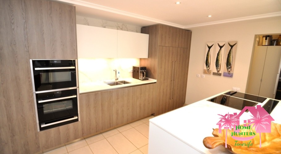 - Stunning and spacios penthouse for sale in the magnificent area of El Duque Costa Adeje in the prestigious "Terrazas del Duque II" complex. Consists of 4 bedrooms, one of which is used as the office, a large living room and dining room, a separate kitchen, 3 bathrooms. From the living room there is an access to a 120 m2 terrace with a big table and space with hammocks and a bar-kitchen equipped with appliances. Besides there is a 20 m2 terrace in the master bedroom suite. You can access through stairs to a 150 m2 ocean view solarium. There is a spacious marble-covered community room, a reception with concierge service, a heated community pool and free WI-FI for residents in the residential complex. 2 parking spaces and 2 storage rooms are included in the price.